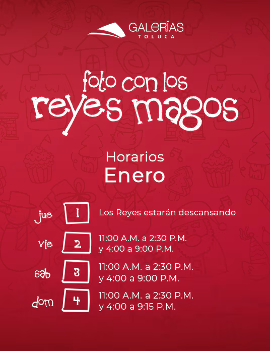 Pero si lo prefieres, puedes visitar Galerías Toluca o Metepec y capturar la magia de la temporada con una foto que conserve el dulce recuerdo de los Reyes Magos.